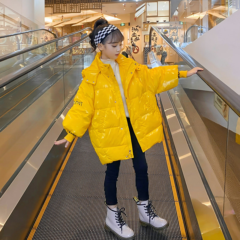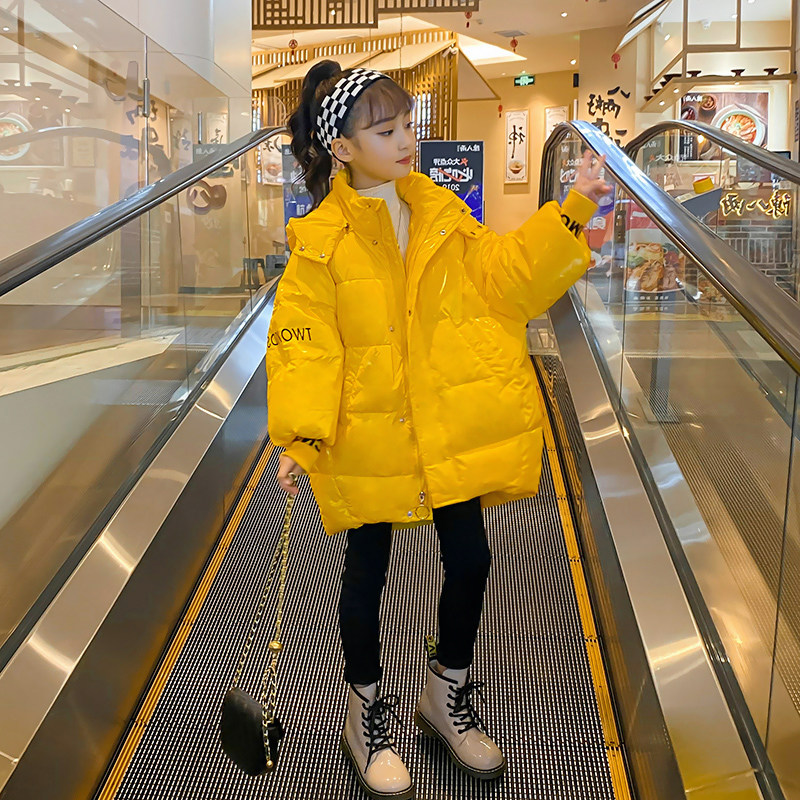 Hong Kong children winter thickened cotton clothes 2021 new foreign Han version girl medium long version down cotton clothing jacket tide