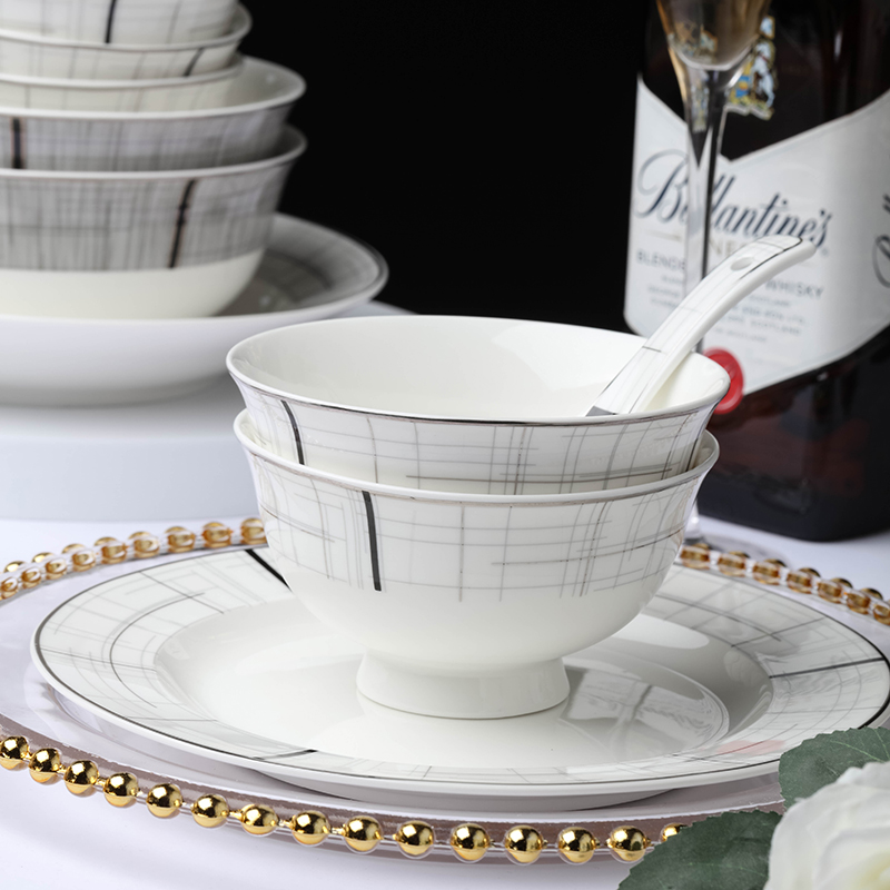 Bowl 58 Head Chinese Dishes DISH SUIT HOME CERAMIC BOWLS CHOPSTICK PERSONALITY NORDIC RICE BOWL CUTLERY CUTLERY BOWL CUTLERY LARGE SOUP BOWL-Taobao