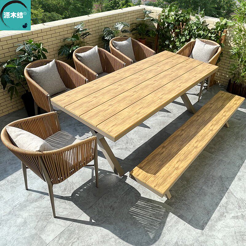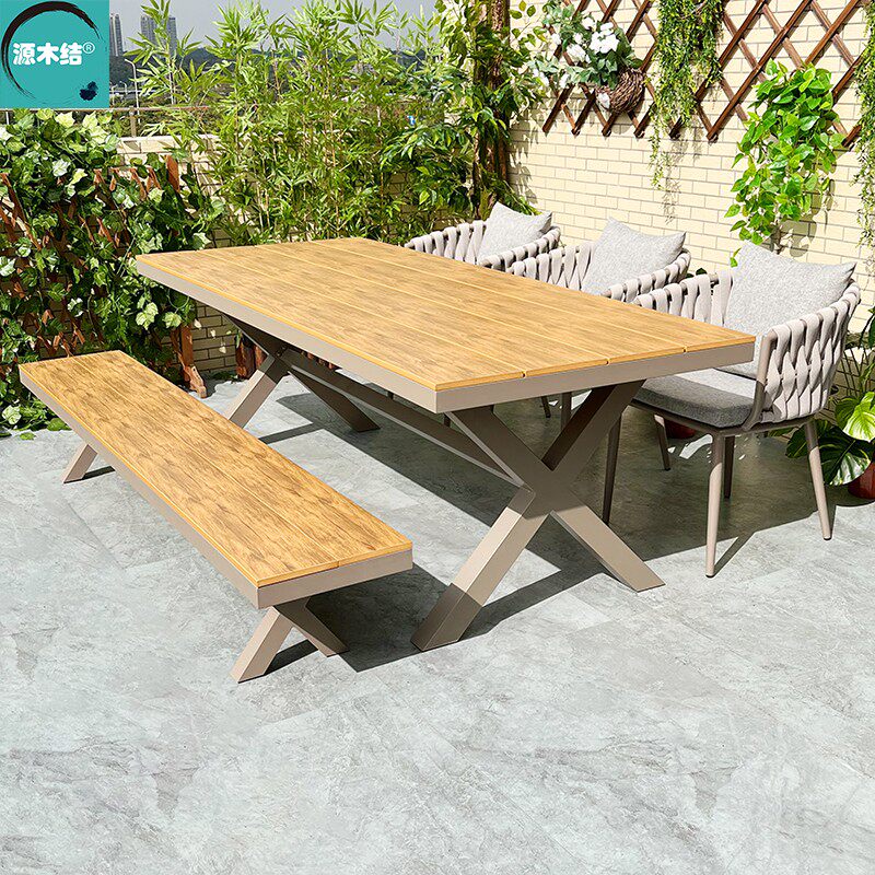 Outdoor tables and chairs Garden Aluminum-plastic wood benches and chairs