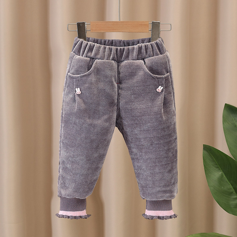 Korean autumn and winter girls plus velvet thickened pants a pair of winter girl baby cotton pants children wear baby winter pants