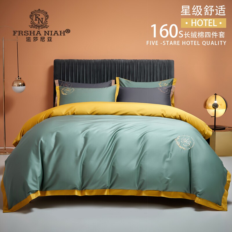 High-grade 160 long staple cotton four-piece cotton cotton 100 bedding sheet bed sheet bed hat kit quilt cover winter
