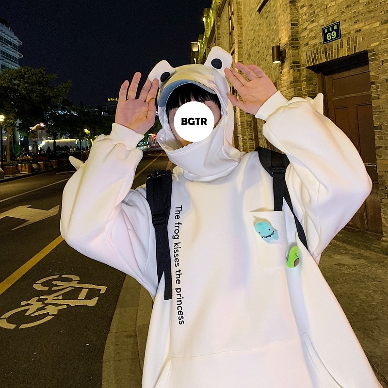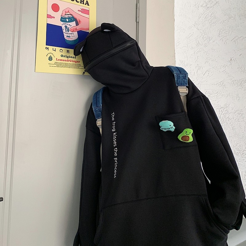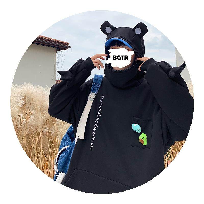 Autumn and winter frog pullover sweater boys plus velvet thick tide brand loose hooded zipper design casual tops