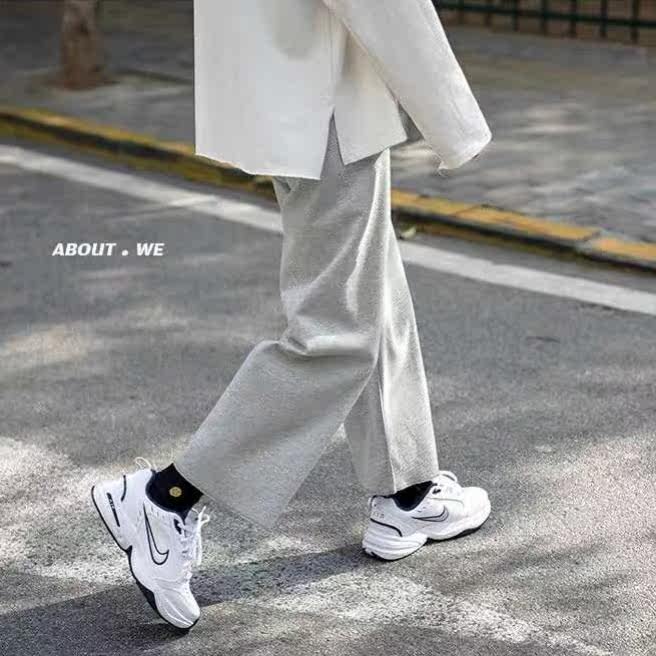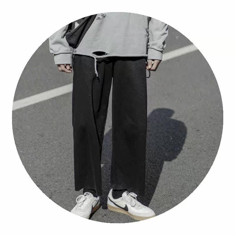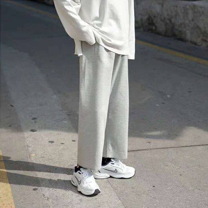 Autumn Winter ins grey pants male Korean version trendy relaxation Leisure 100 lap ulzzang Straight drum thin sports thick cotton pants
