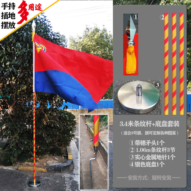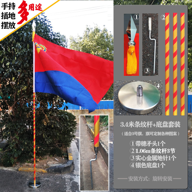 3 4m floor with spike Spike Spear Stripe Combined Rod Stainless flag base without flag Ground Cone Flag Combination