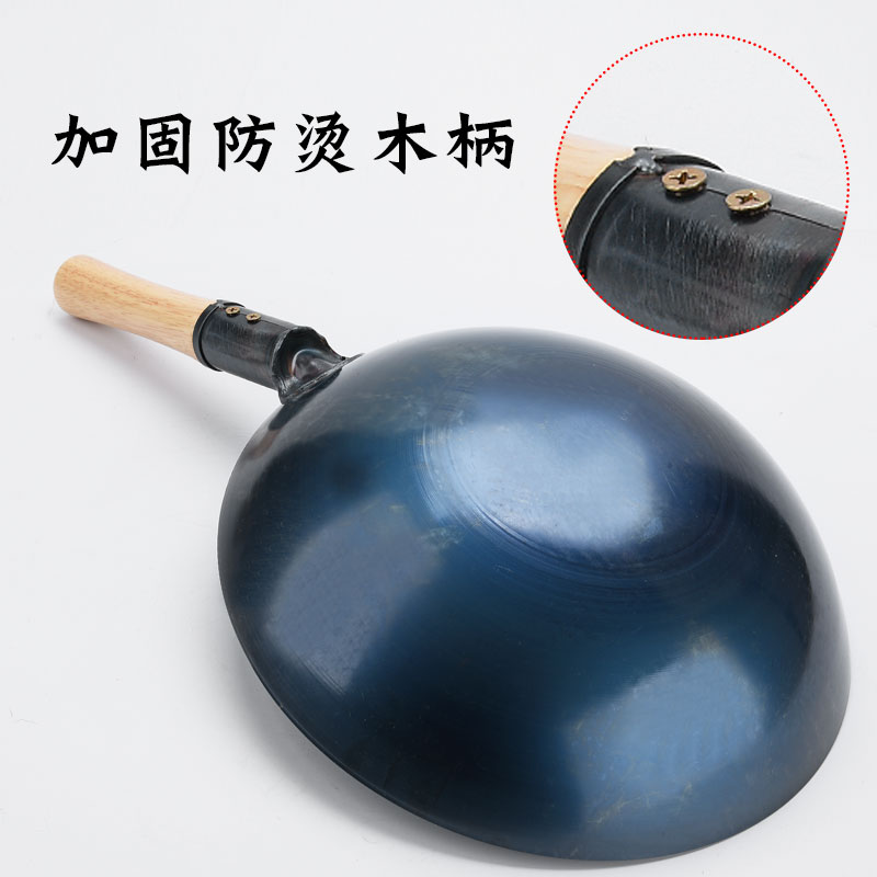 Cooked iron frying pan old-fashioned iron pot pot frying pan household round bottom gas stove suitable for restaurant chefs commercial frying spoon
