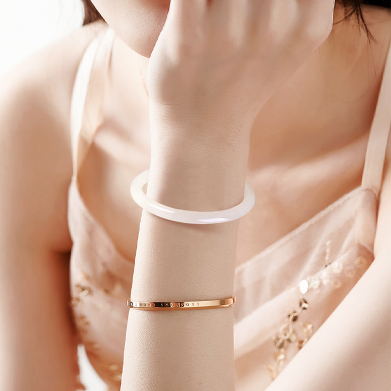 Yingyutang and Tian Yu bracelet round strip sheep fat white jade small thin strip girl small jade bracelet children's style natural