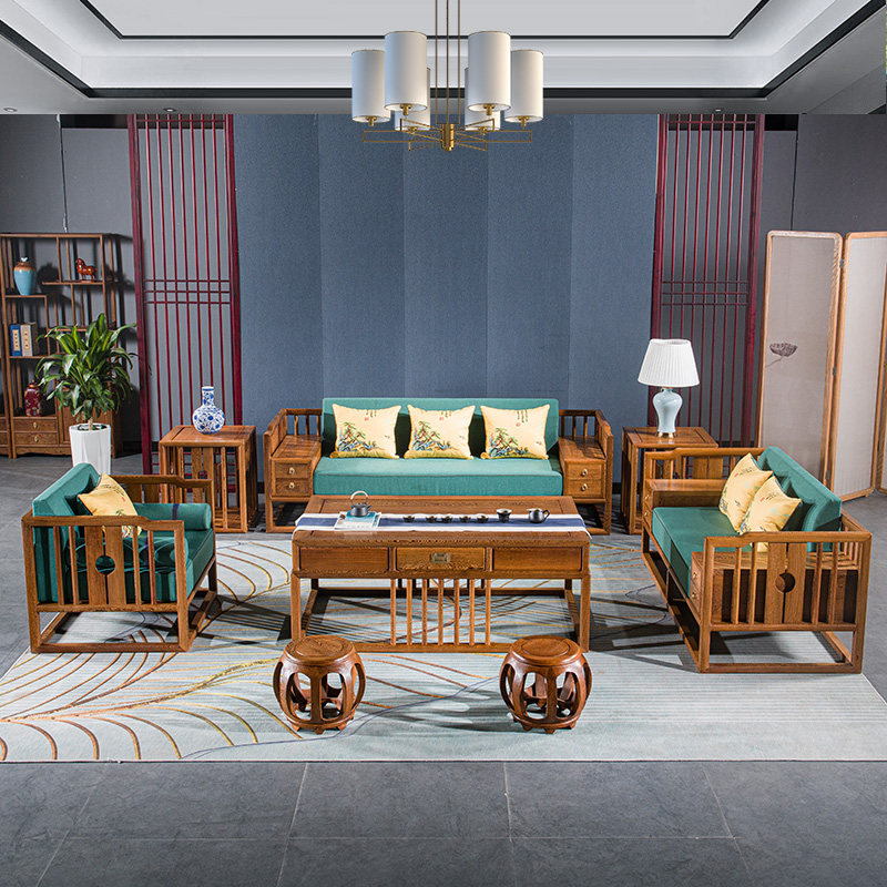 Mahogany furniture chicken wing wood sofa bed chair coffee table living room Zen new Chinese style combination light luxury three-seater single seat