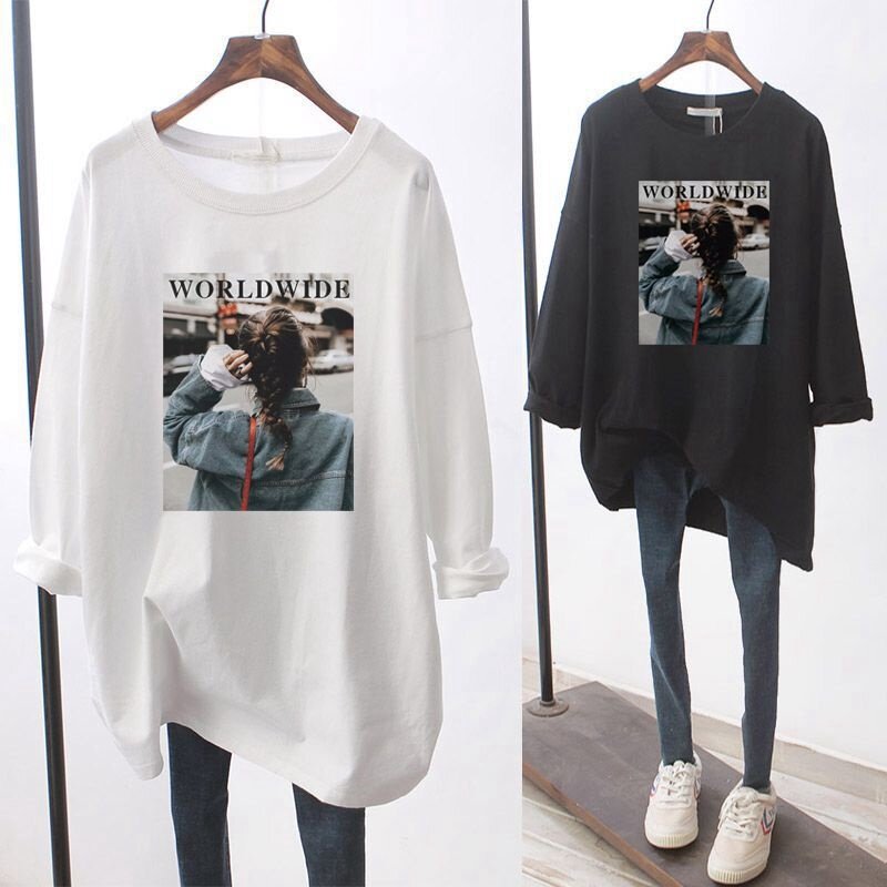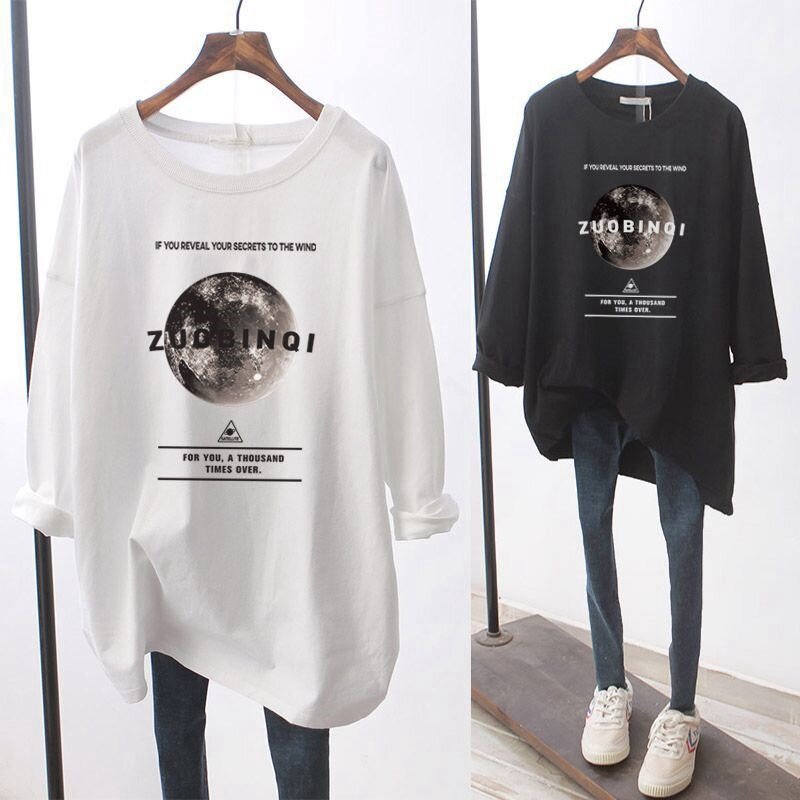 2022 Spring Autumn New White T-Shirt Woman Long Sleeve Mid Korean version loose 100 hitch-hitch bottom-shirt jacket