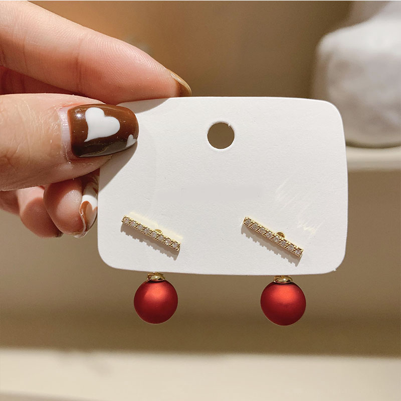 Red pearl earrings in the red