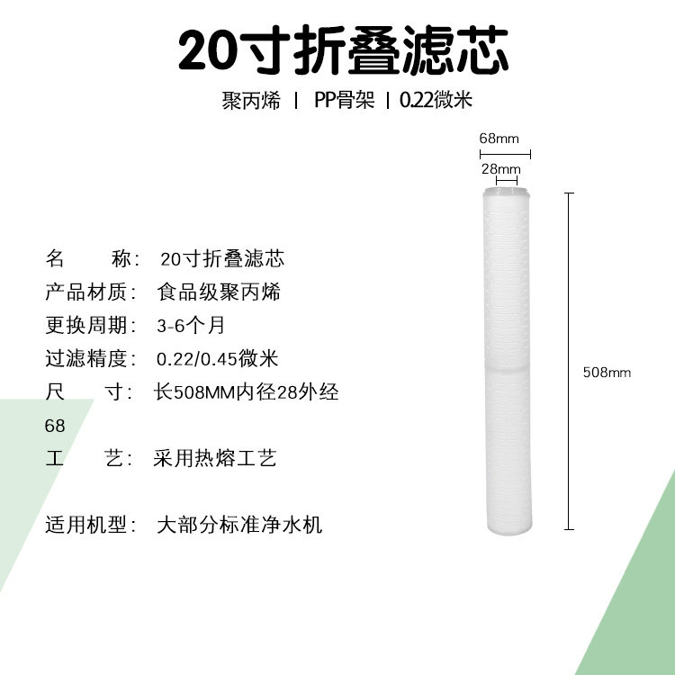Folded filter element 10 inch 20 inch 30 inch 40 inch PP microporous water purifier filter element precision security filter water treatment