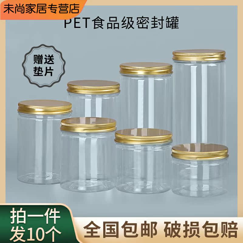 Milk jujube jar aluminum gold cover plastic bottle empty sealed jar thickened pet food jar packaging barrel round transparent wide