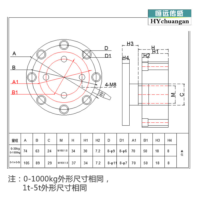 0-30Kg0-50KG0-100KG0-200KG0-300KG0-500Kg0-1000Kg (diameter 74)0-1T (straight