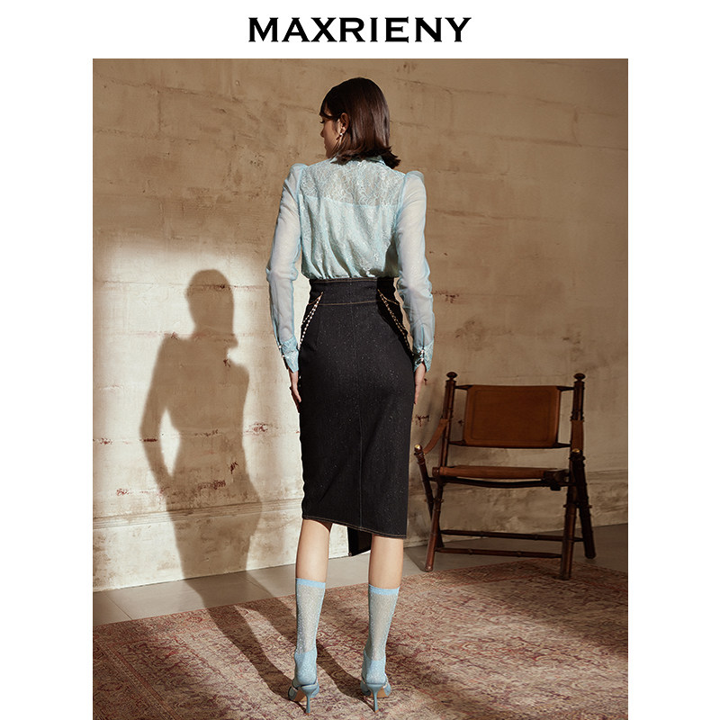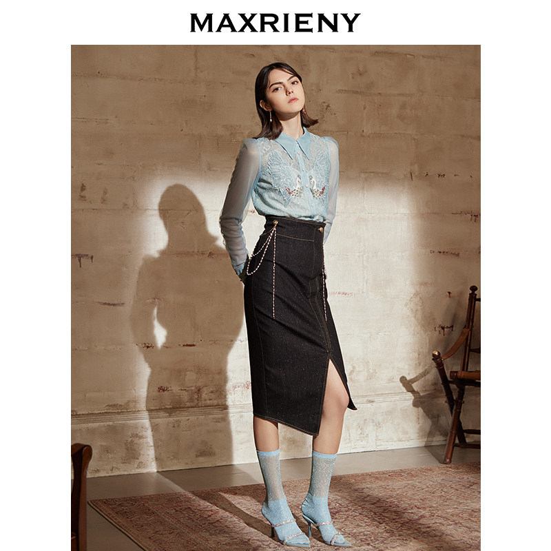 MAXRIENY2021 Spring new long version High waist commuter Half dresses Women's retro fit big clothes 100 hitch a little crowdsourced design