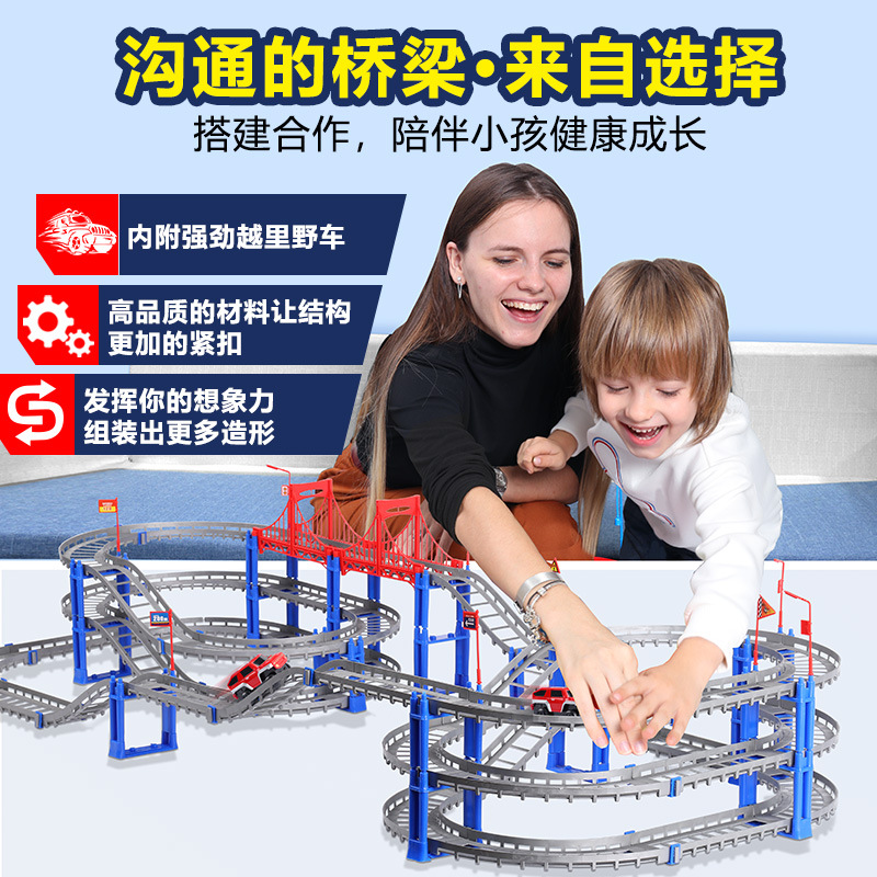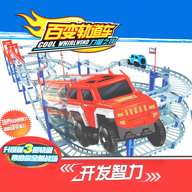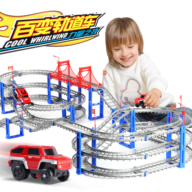Trembling Toy Railcar Assembled Electric High Speed Race Track Three Floors Small Train Car Diy Puzzle Children