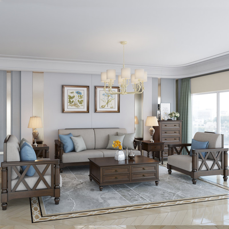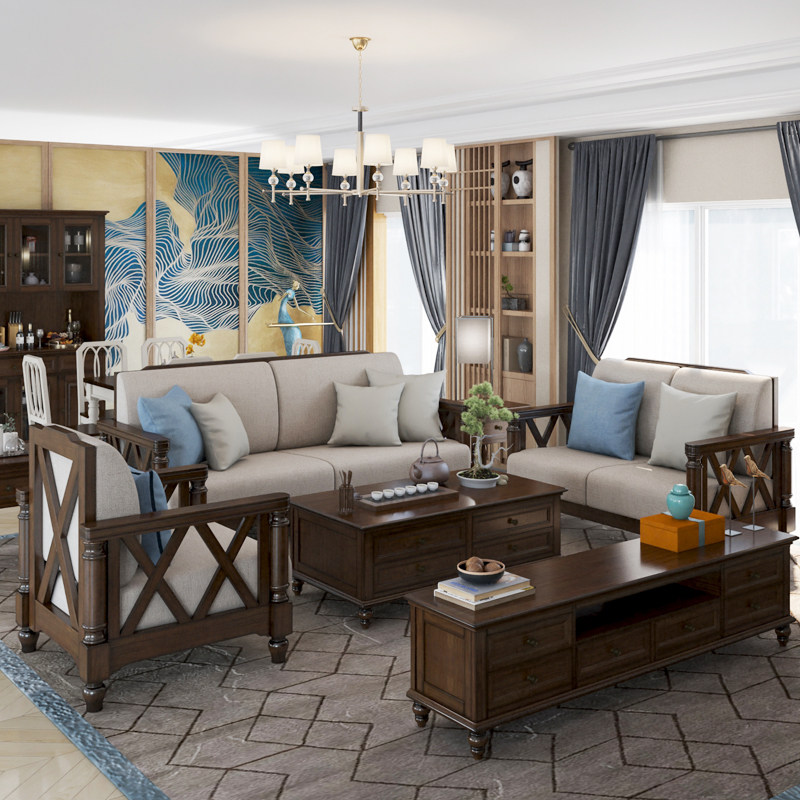 American country all solid wood sofa living room fabric modern minimalist size apartment ash wood furniture combination set