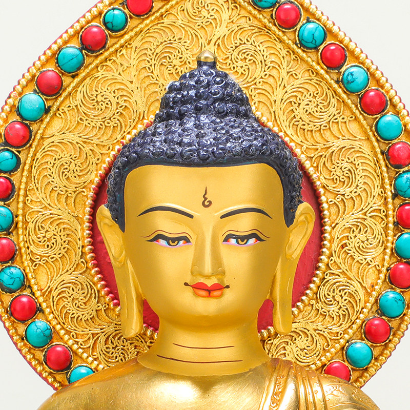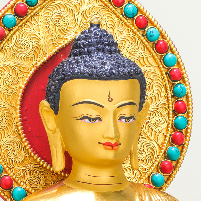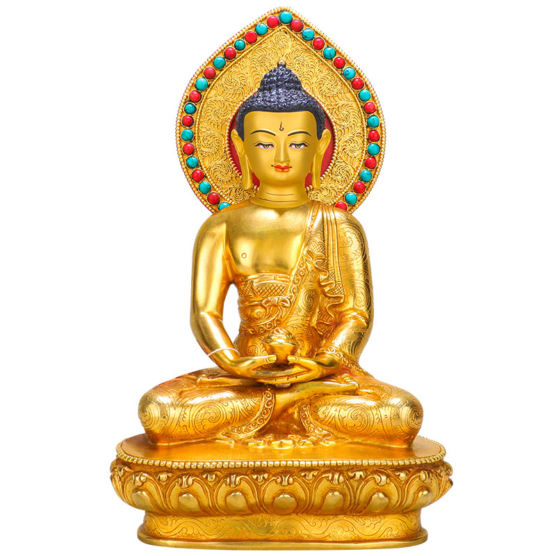 Amita Buddha statue Nepal hand - made copper - lit gold - tied Tibetan Buddha Table for 7 inches