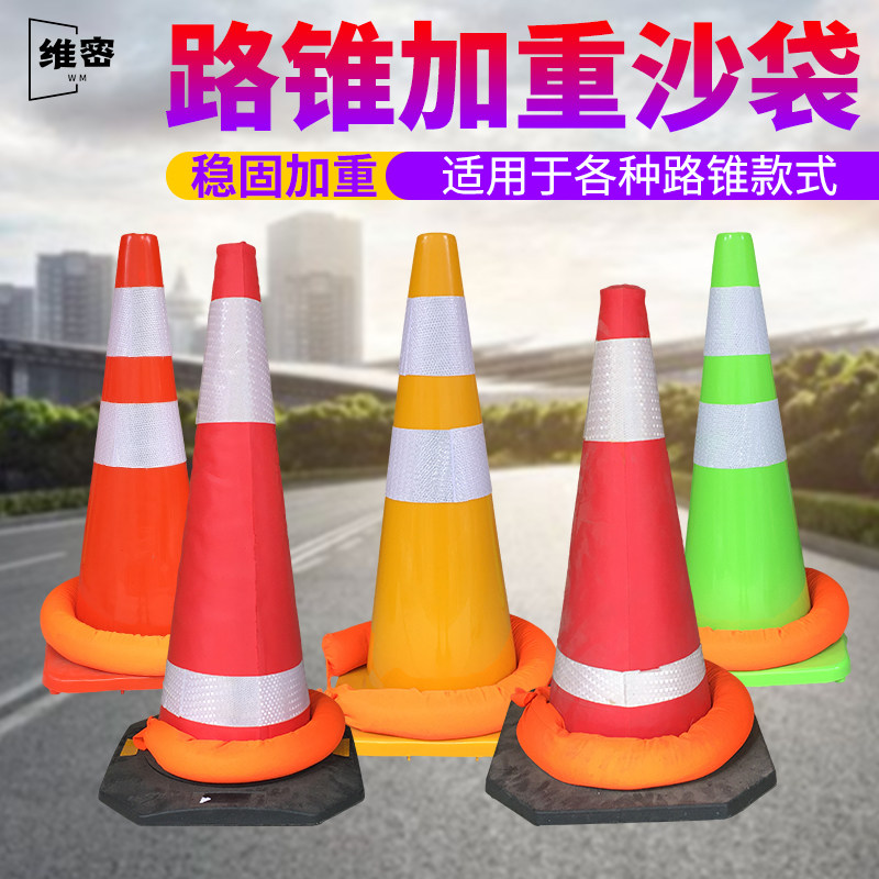 Road cone sand bag press cone pier warning traffic facility reflective sign installed with sand repair road block