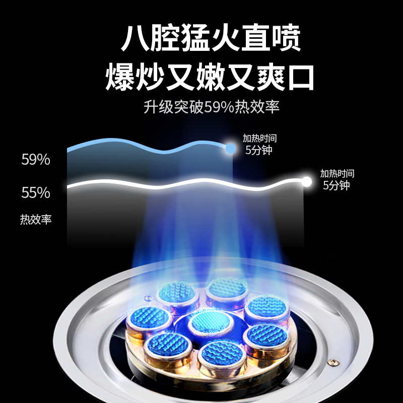 Desktop glass eight-cavity fierce fire double stove (natural gas) No giveaways