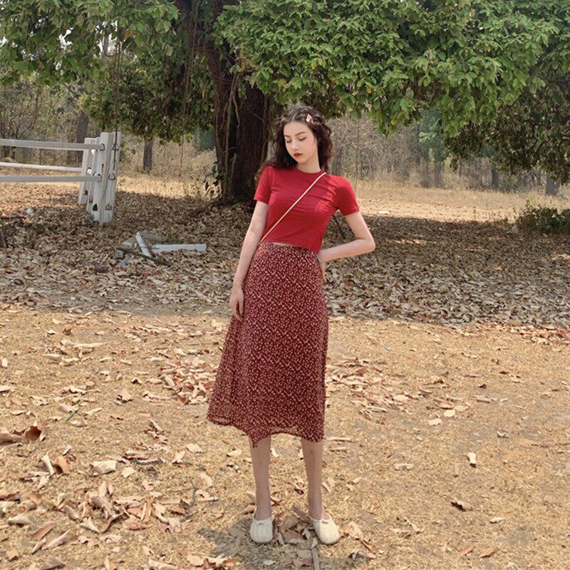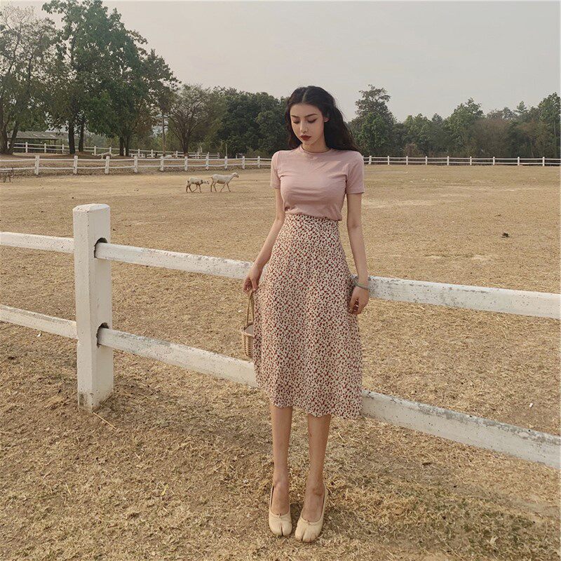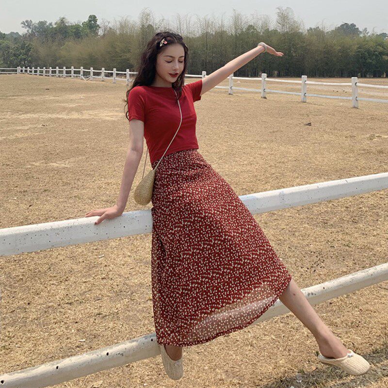 Pink T-Shirt Floral Skirt Red T-Shirt Floral Skirt