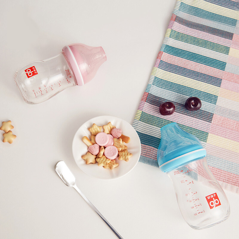 gb good baby newborn glass bottle 0 - June baby anti - inflation air wide caliber anti - fall bottle