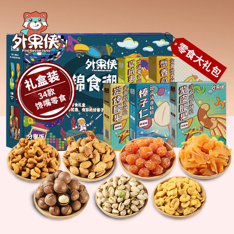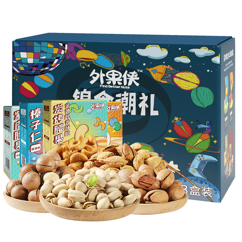 Waiguoxia nut snack gift pack 8 boxes 1555g New Year gift daily dried fruit mixed gift box Small package