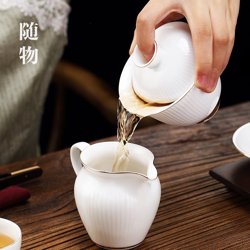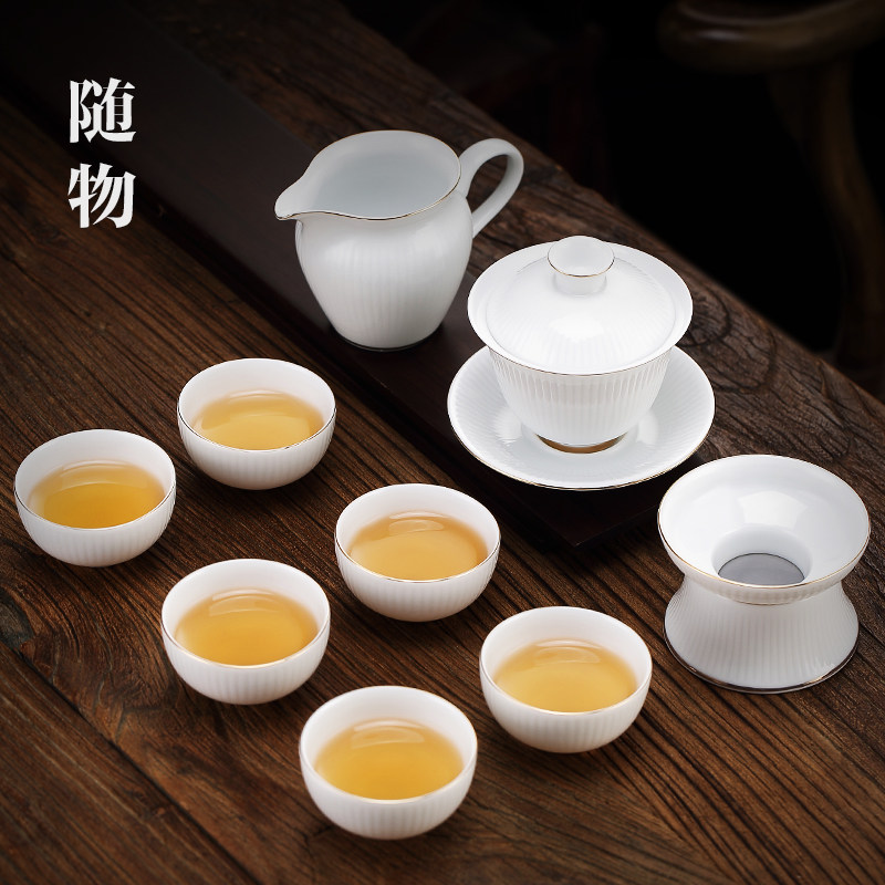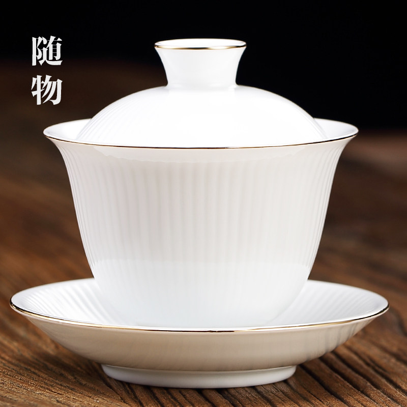 Kung fu tea cover bowl of cash white porcelain tea cup three single ceramic cup JingdeTown not hot tea bowl