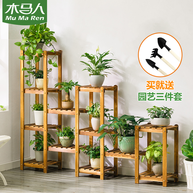 Trojan Flower Shelf Living Room Floor Placement Frame Balcony Flower Pot Multi-layer Solid Wood Chamber