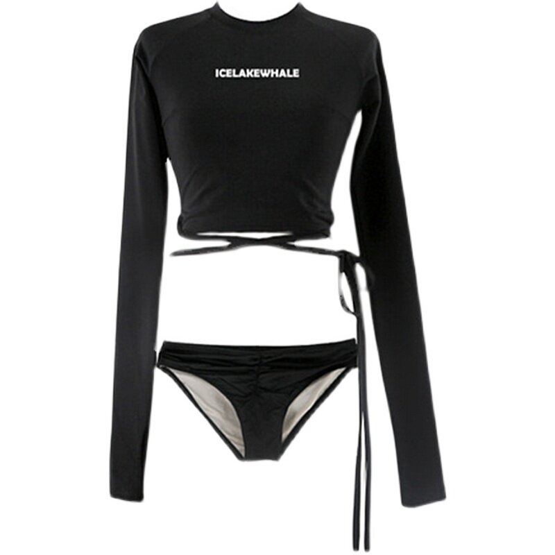 South Korea's two-piece swimsuit female fairy fan black sexy small chest gathered to cover the belly conservative and thin hot spring vacation swimsuit