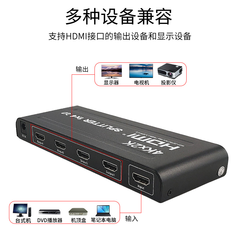 hdmi splitter one minute four video signal 1 into 4 out of splitter ground computer host monitor split screen 4K