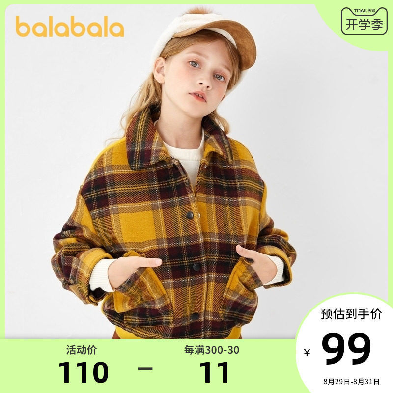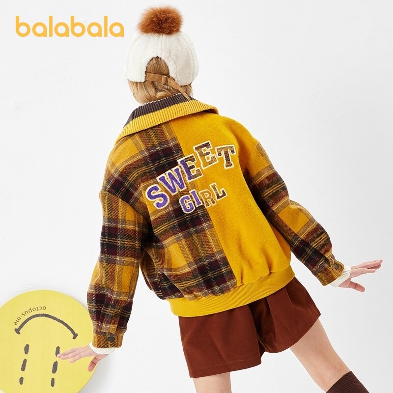 (Anti-season hot selling) Balabala girls' wool coats 2021 new autumn and winter great children's children baseball uniforms