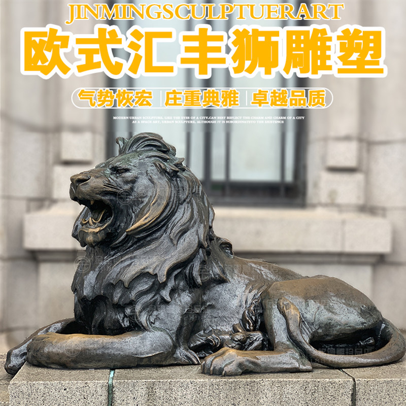 Eurostyle HSBC Foundry Bronze Lions Pair Animal Foundry Bronze Sculptures Company Villa Yard Doorway Hem