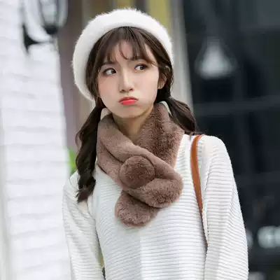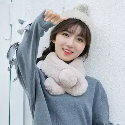 Scarf female winter Korean version of Joker cross rabbit plush scarf white hairy cute girl warm neck cover