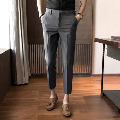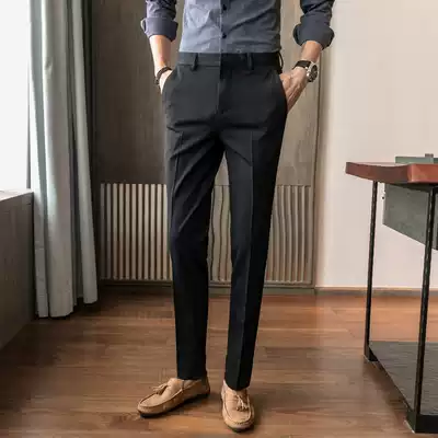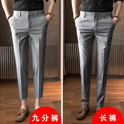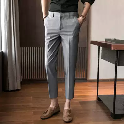 Spring and autumn trousers men's casual hanging trousers slim height ankle-length pants straight tube business dress suit suit suit pants tide tide