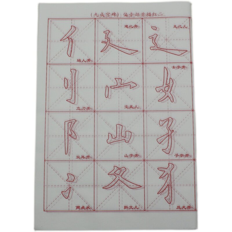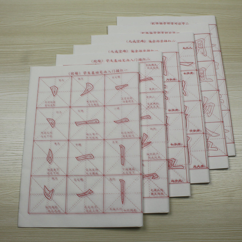 Calligraphy, regular script, tracing red, 6 pieces