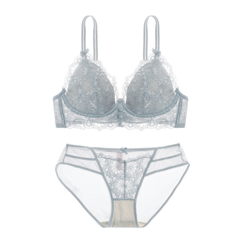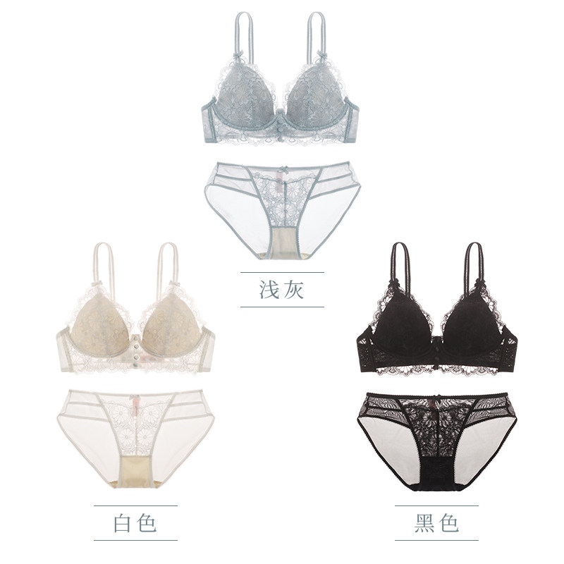 Lingerie Home Side Collection Lace Embroidery Method Type Triangle Cups Underwear women No steel ring Sexy thin cotton lingerie suit
