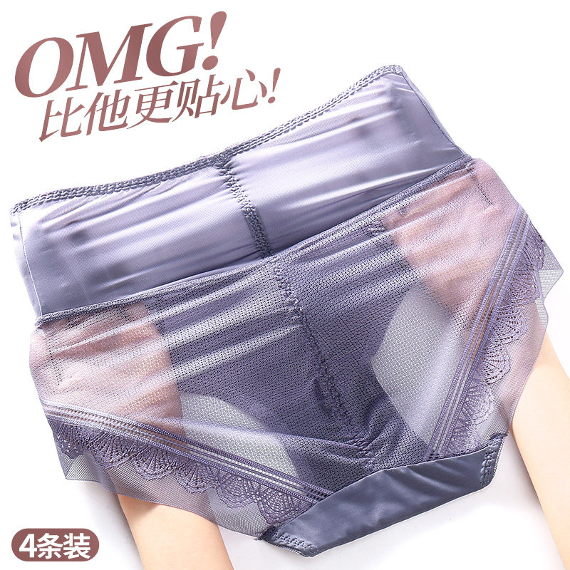 Underwear women's ice silk seamless high waist belly sexy lace summer ultra-thin breathable shorts purple briefs