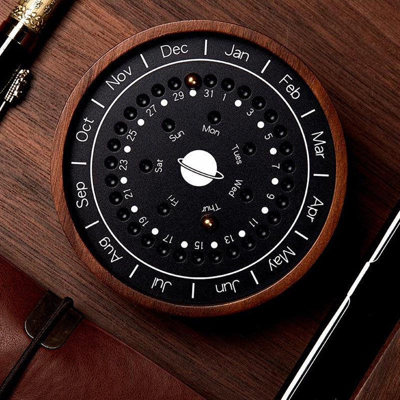 Planet desk calendar Perpetual calendar Sundial Creative Chinese style decoration Solid wood magnetic ball office desktop decoration gift