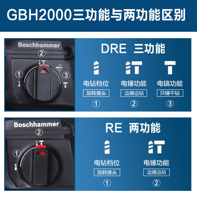 GBH2000RE hammer drill with two functions GBH2000DRE hammer drill with three functions