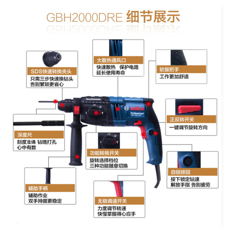 Bosch impact drill electric hammer electric pick electric drill four-pit multi-functional two-three-use power tool GBH2000RE DRE