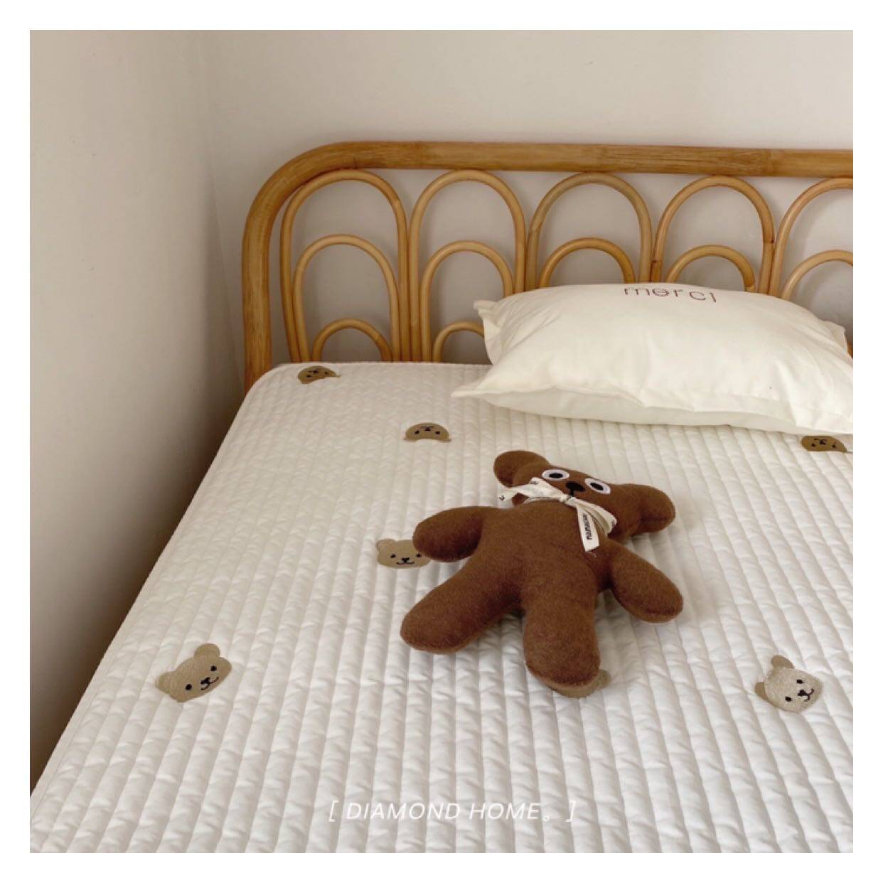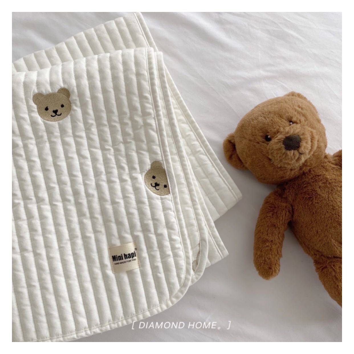 Ins bear embroidery baby quilting quilted soft cushion quilt sheets 100 cotton children's sheets