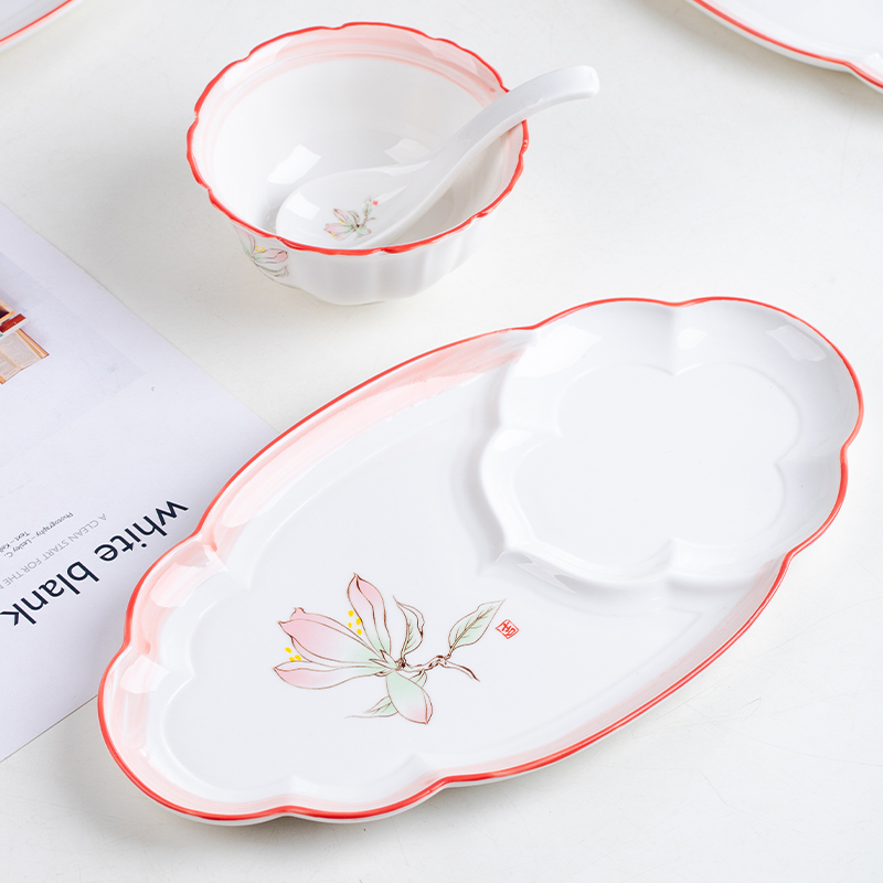 Jingxiong Japanese style Bone Porcelain breakfast tray One food tableware light and luxurious suit Home combine Ceramic Plate Dishes