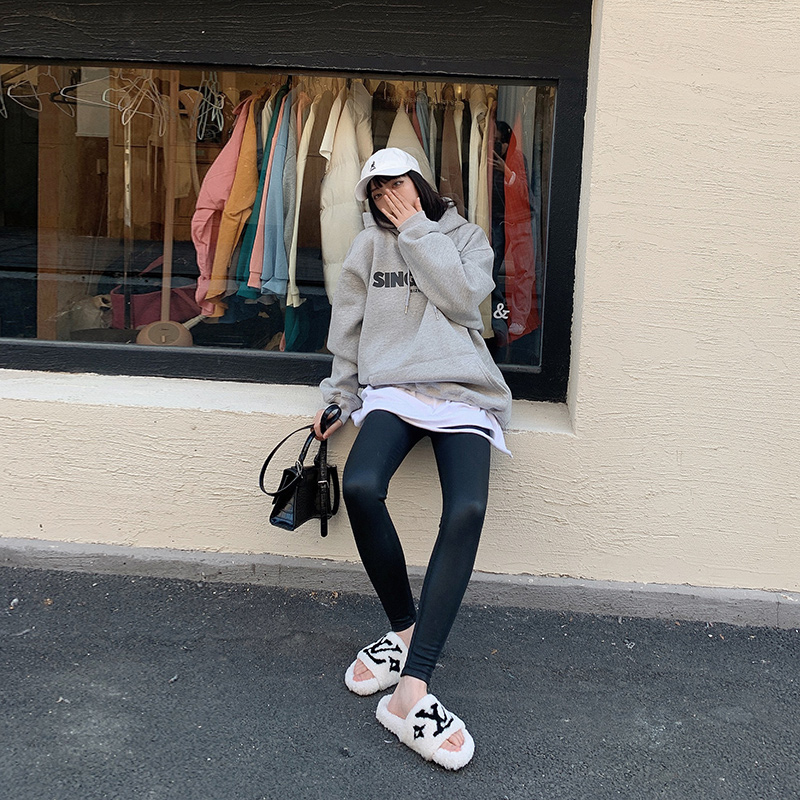 Black pants female autumn and winter plus wear warm high waist shark skin tight elastic yoga pencil pants