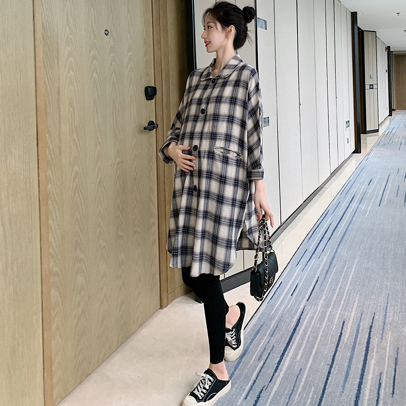 Maternity Autumn Suit Fashion Mid-Long Spring and Autumn Tops Long Sleeve Shirt Age Reduction Autumn Dress Hip Mom Skirt