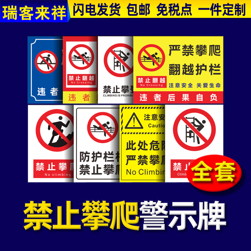 Forbidden climbing identification cards strictly forbidden to turn over guardrails warning signs high pressure water depth dangers forbidden to climb across the sign cards