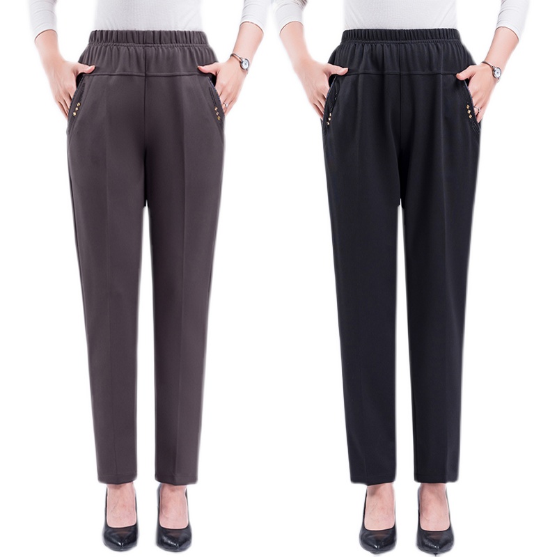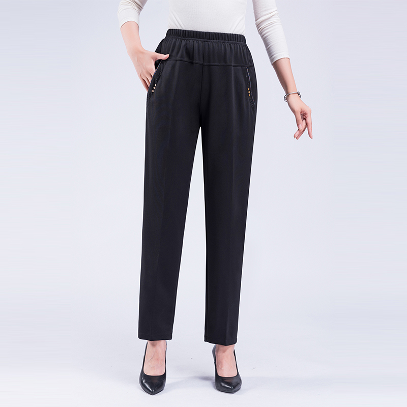 Middle-aged women's pants spring and Autumn large size elastic high waist loose pants mom pants Fat granny stretch straight pants
