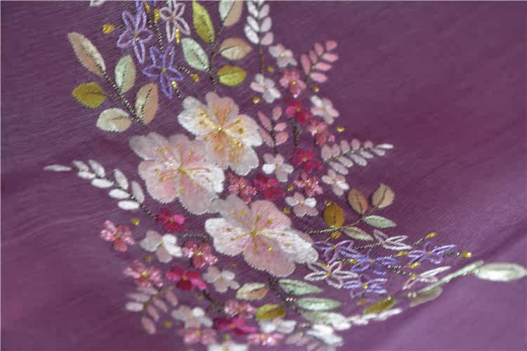 Silk hand embroidery Suzhou embroidery old embroidery embroidery piece purple line 3 mulberry silk high-end fabric
