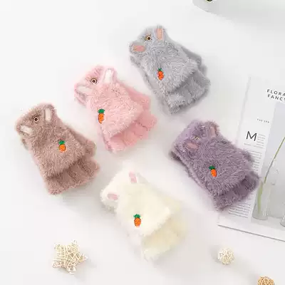 Children's gloves winter warm girl cute half finger flip cover five finger finger finger primary school student writing homework girl