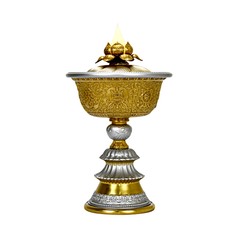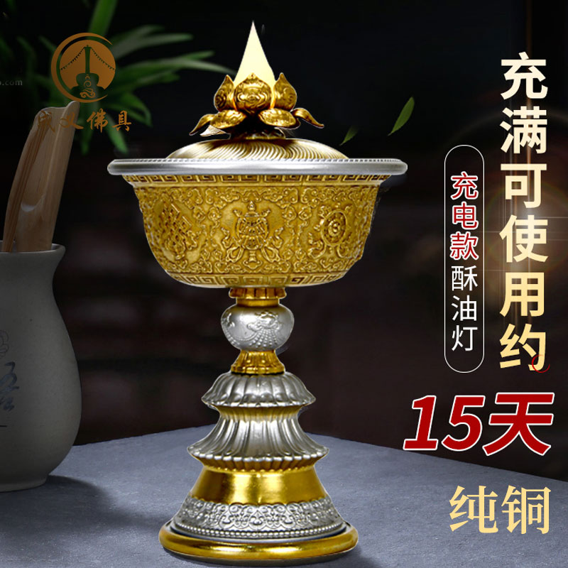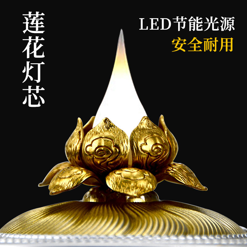 Electronic led crisp oil lamp for Buddhist home charging pure copper electronic candle holder emulation flame Changming lamp lotus for lamp