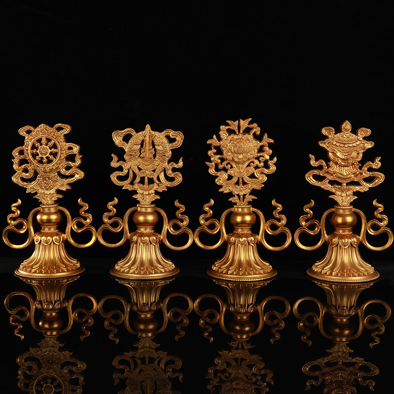 Tibetan-spread pure bronze Eight auspicious pendulum pieces Buddha Hall Home Buddha Boutique Level Secret-Buddhism Eight Treasure Buddhism for Buddha Supplies