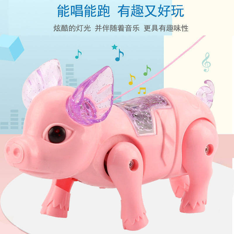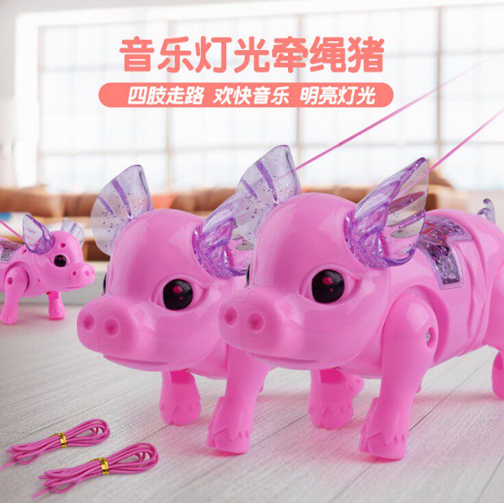 Shake-up Electric Rope Luminous Piglet Nets Red Music Pig Children's Internet Red Night Market Stall Walking Toys